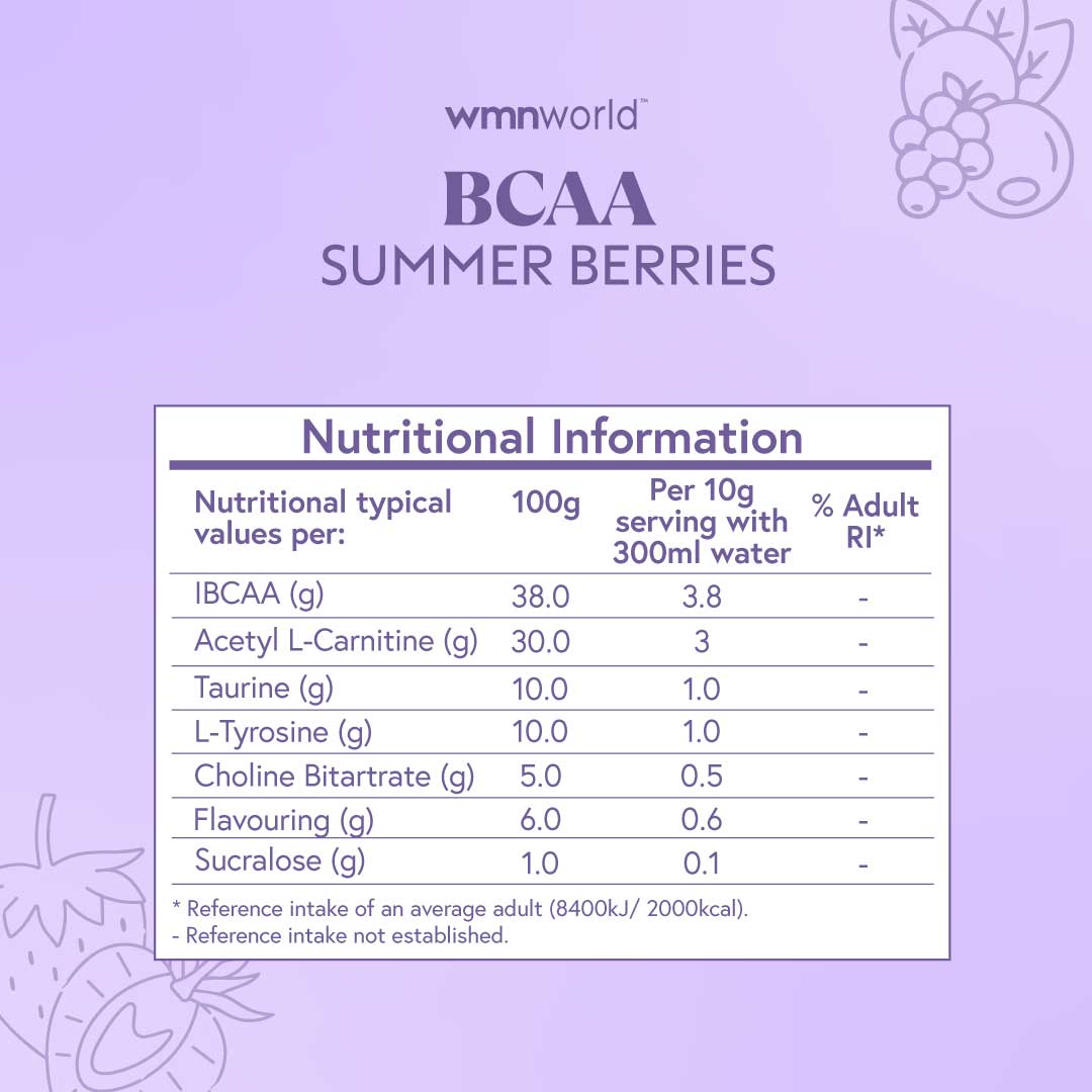 Flavored with real fruit extracts, our BCAA comes in two refreshing options — Natural Peach Tea and Summer Berries. Light, clean, and easy to sip before, during, or after your workout. No sugar. No artificial flavorings. Just a fresh way to recover.