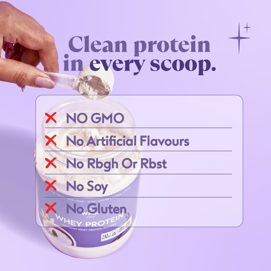 Our whey protein is produced in the UK to the highest manufacturing standards. We use only high-quality whey concentrate, delivering a complete amino acid profile — with no added fillers, artificial colors, or misleading blends.